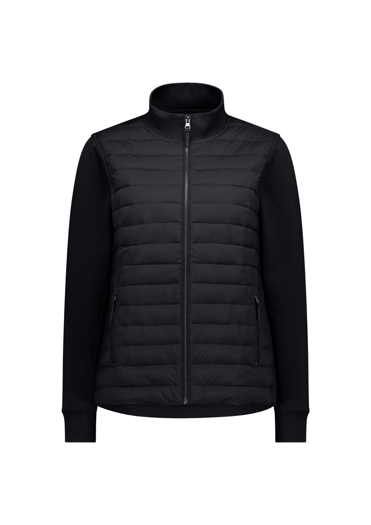 – Quilted panel: 89% Polyamide, 11% Elastane, 70 GSM; Knit panel: 51% Cotton, 49% Polyester, 305 GSM; Lining: 100% Polyester, 68 GSM; Polyfil 220 GSM; Rib: 95% Polyester 5% Elastane, 530 GSM